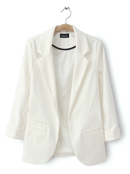 Gündelik Katı Renk Yok Düğme Açılır Boyun 3/4 Kol OL Blazer Takım Elbise COD