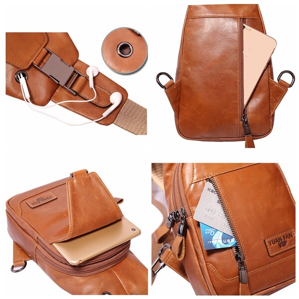 • Ekphero® Erkek Casual Hakiki Deri Yağ Balmumu Göğüs Çanta Çapraz gövde Çanta