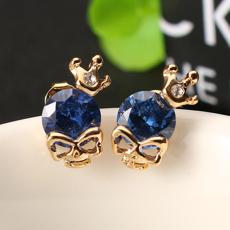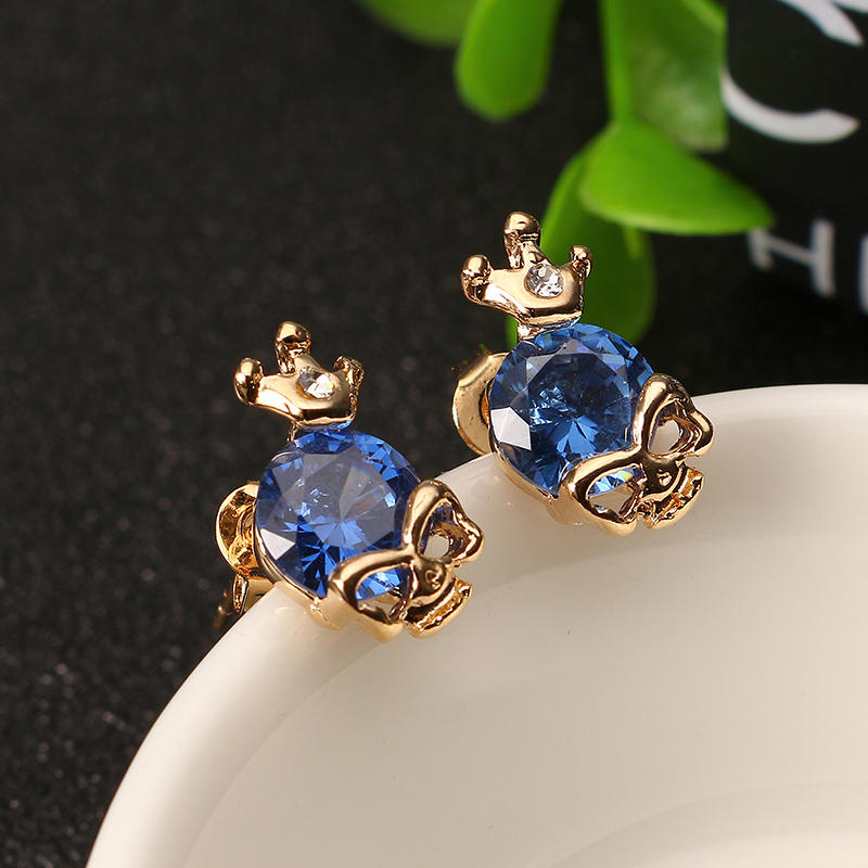 Punk Kafa Tası Crown Kulak Stud Zarif Çinko Alaşımlı Rhinestones Küpeler Kadın için COD