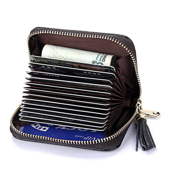 RFID Antimanyetik Hakiki Deri 15 Kart Yuvaları Çok Katlı Pusetler Kart Tutucu Paraları Çanta COD
