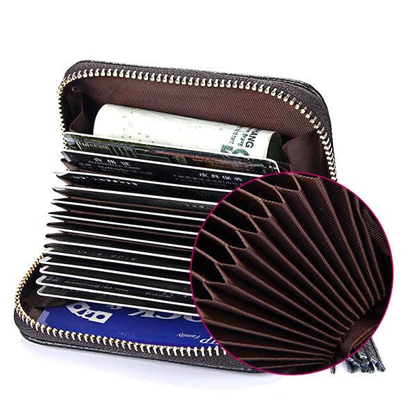 • RFID Antimanyetik Hakiki Deri 15 Kart Yuvaları Çok Katlı Pusetler Kart Tutucu Paraları Çanta