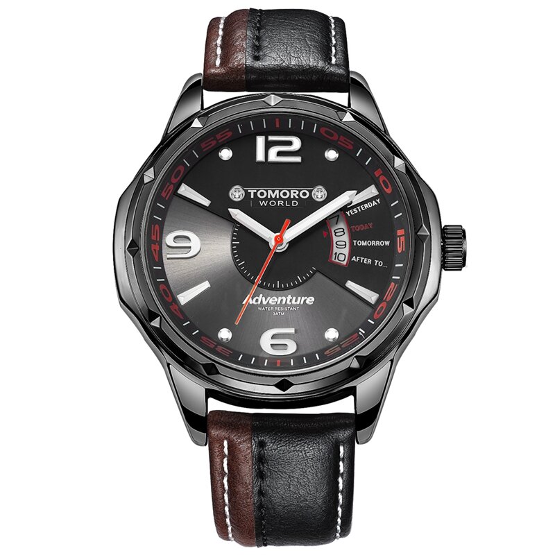 tomoro Marka TMR0214 Takvim Çift Renkli Deri Erkek Kuvars Çarpıcı Şık Erkek Kol Saati